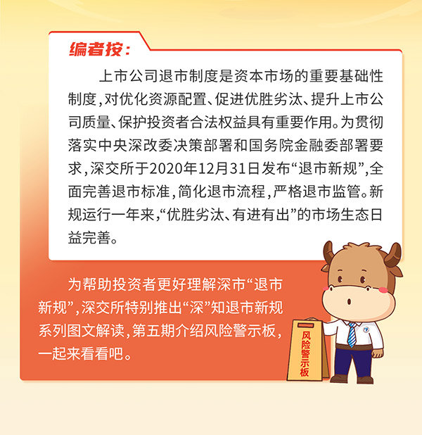 “深”知退市新规系列之五丨风险警示板 2022.04.24 6393 字号 A- A A+ 返回列表 上一篇 2022.05.16 5.15全国投资者保护宣传日 下一篇 2022.04.24 “深”知退市新规系列之四丨营业收入扣除