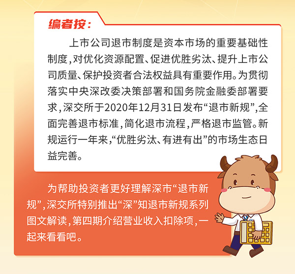 “深”知退市新规系列之四丨营业收入扣除 2022.04.24 5591 字号 A- A A+ 返回列表 上一篇 2022.04.24 “深”知退市新规系列之五丨风险警示板 下一篇 2022.04.24 “深”知退市新规系列之三丨优化退市指标