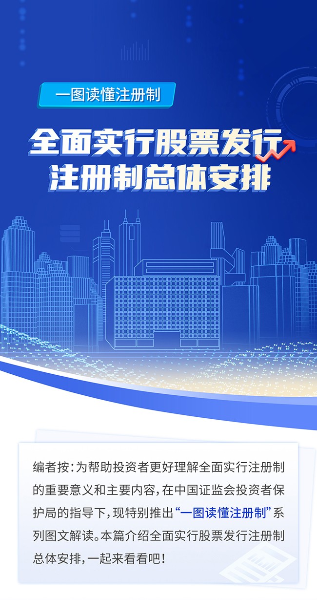 一图读懂注册制丨全面实行股票发行注册制总体安排 2023.04.10 6132 字号 A- A A+ 返回列表 上一篇 2023.04.10 一图读懂注册制丨新股申购 下一篇 2023.03.14 全面注册制,改革向未来:主要制度规则介绍