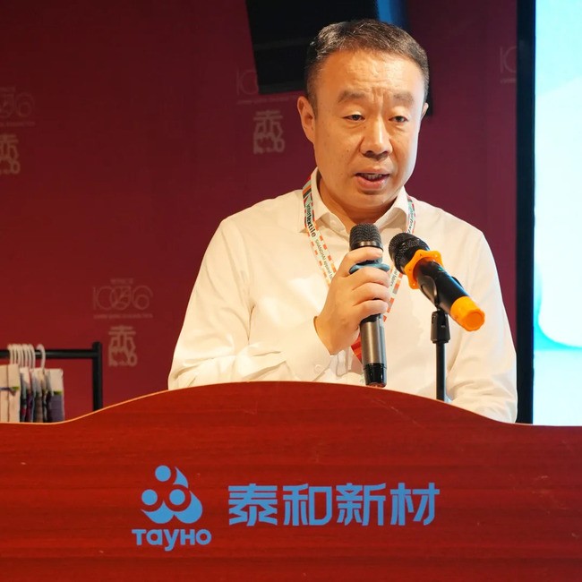 迟海平在致辞中讲到,“智染未来”,智在科技,染在绿色,赢在柔性。我们坚信,唯有将前沿科技、绿色理念与柔性制造深度融合,才能引领行业走向一个更智能、更环保、更敏捷的未来。这不仅是一个主题,更是泰和新材对行业的承诺:我们愿与所有伙伴共同助力国家"双碳"战略,让纺织行业成为绿色发展的典范。