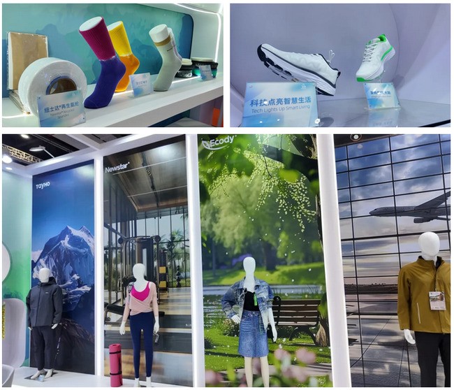 泰和新材以“全链路可持续”为导向,展示了包括纽士达®旗下回收氨纶、生物基氨纶、可降解氨纶与彩色氨纶,Ecody®绿色印染系列婴童类面料、高克重针织面料以及T2T回收涤纶、零碳工装,打造覆盖纺织新材料全价值链的一体化绿色解决方案。