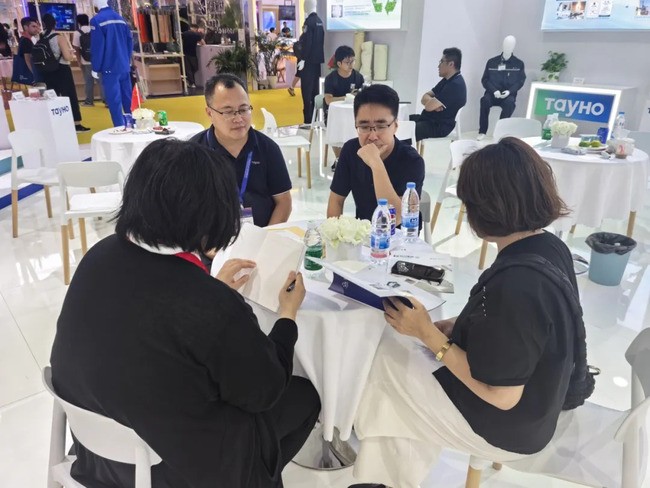 本次展会,泰和新材带来了泰普龙®对位芳纶和泰美达®间位芳纶两大核心产品矩阵,更以"解决方案+差异化产品"的创新驱动模式,全面展示了在个体防护、工业环保、可持续发展领域的前沿成果。凭借硬核的产品实力与前瞻性的解决方案,现场吸引了海内外众多专业客户驻足交流、洽谈合作,充分彰显出中国新材料企业在全球市场中的技术自信与强劲品牌影响力。