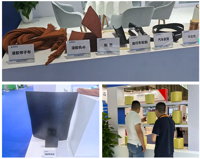 泰和新材集中展示了覆盖橡胶行业核心品类的丰富产品矩阵,呈现了其在汽车胶管、同步带、农机带、轮胎、输送带及RTP柔性复合管等关键领域的成熟应用成果。从产品实物呈现到应用场景落地,泰和新材全方位传递出针对橡胶行业不同细分需求的一体化解决方案能力,为客户提供从材料增强到终端应用的全链路支持,切实彰显技术赋能与场景适配的双重价值。