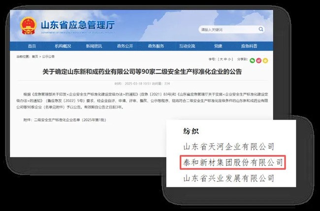 坚守 “安全第一、责任至上” 理念,泰和新材持续筑牢安全防线,践行企业社会责任。经系统准备与评审,公司通过山东省二级安全生产标准化企业认证。