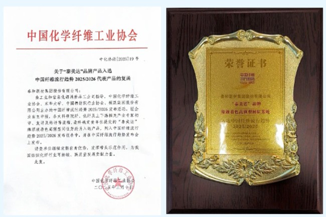 泰和新材旗下产品泰美达®原液着色高强型间位芳纶凭借卓越的性能、创新的工艺和可靠的质量脱颖而出,成功入选中国纤维流行趋势 2025/2026。