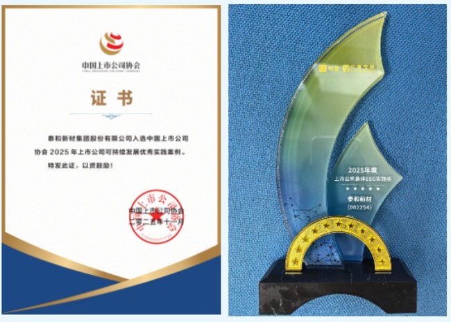 泰和新材入选2025年上市公司可持续发展优秀实践案例并荣获2025年度上市公司最佳ESG实践奖。公司以创新驱动绿色发展,将生态效益与经济效益深度融合,为上市公司履行社会责任、实现长期价值增长树立了典范。